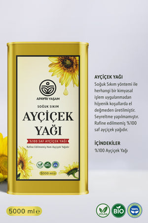 5 Litre Soğuk Sıkım Rafine Edilmemiş %100 Saf Ham Ayçiçek Yağı