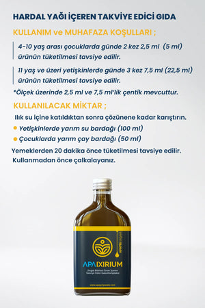 Apaixirium, tamamen doğal ve bitkisel özlerden oluşan, güçlü antiviral yağlar içeren, bağışıklık sistemini desteklemeye yönelik özel bir formüldür. %100 bitkisel içeriği sayesinde doğadan gelen en güçlü bileşenleri vücudunuza sunar. Apaixirium, hardal yağı başta olmak üzere zencefil, çörek otu, kekik gibi en değerli bitkisel yağlarla zenginleştirilmiştir.