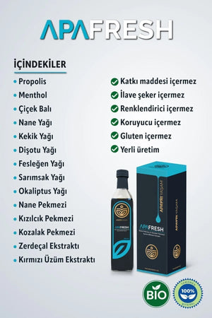 Apafresh, solunum yollarını desteklemeye yönelik nane ve kozalak pekmezi gibi doğal bileşenlerden oluşan bitkisel bir karışımdır. Hem yetişkinler hem de çocuklar için uygun olan bu ürün, solunum sistemine katkı sağlamaya yardımcı olmak amacıyla özel olarak formüle edilmiştir.